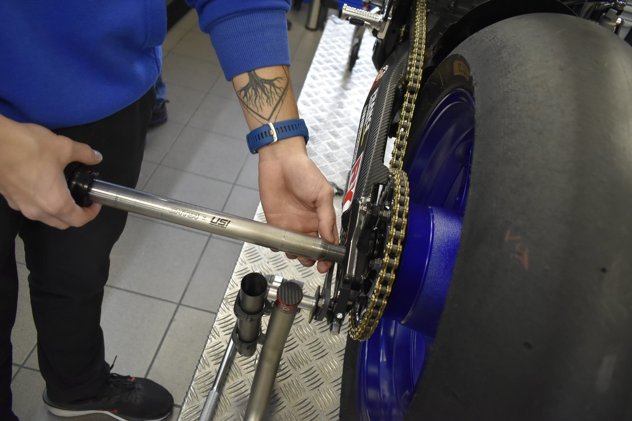 Axe de roue arrière pour Yamaha R9 avec bras oscillant de XSR900 utilisé en mondial super sport (WSSP) par le GMT94.