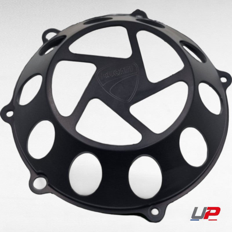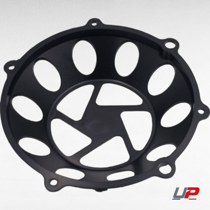 Couvercle d'embrayage à sec taillé dans la masse dans un aluminium de qualité aéronautique, ce couvercle d'embrayage offre un style unique à votre moto et permet de voir l'embrayage à travers celui ci.