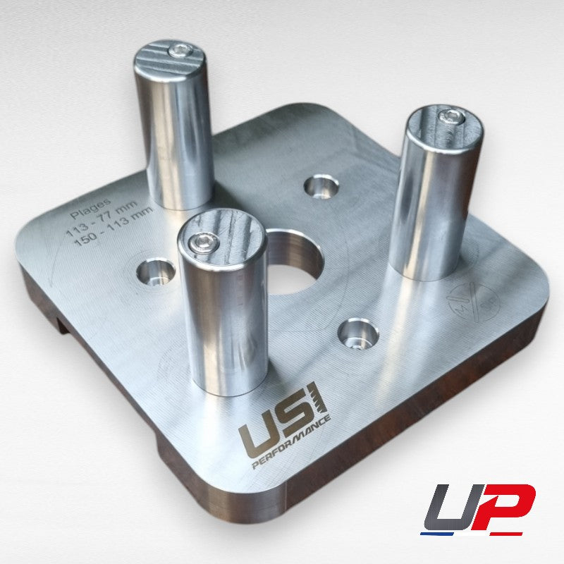 L'outillage de centrage facilite l'alignement des masses de vilebrequin lors d'un rééquilibrage ou d'un changement de bielle.