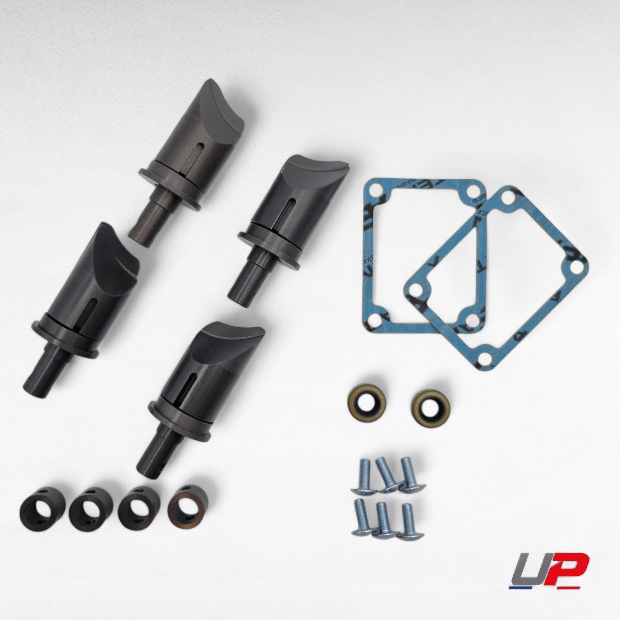 Nouvelle génération de valves usinées en 2 parties ce qui réduit considérablement le risque de casse et le nombre de pièces en mouvement tout en gardant un système de valves performant. Cette nouvelle configuration supprime les ressorts de rappel ce qui élimine l'usure de ceux-ci.